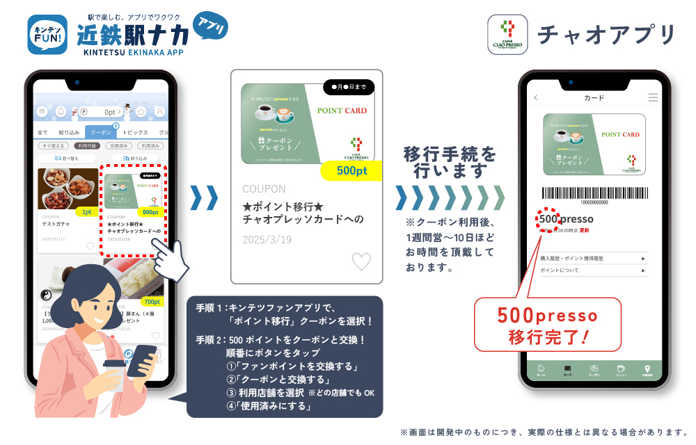 ファンアプリで貯めたポイントをチャオプレッソでご利用いただける