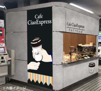 2021年12月28日(火)に、近鉄大阪難波駅構内1・2番線ホーム上(名古屋・伊勢志摩・奈良方面行き)の特急券売り場跡に、チャオプレッソの姉妹ブランド店「Cafe Ciao Express(カフェチャオエクスプレス)」をオープンいたします。